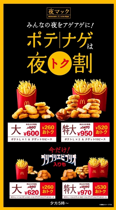 夕方5時からの夜マックでは、特別なセットが登場します。